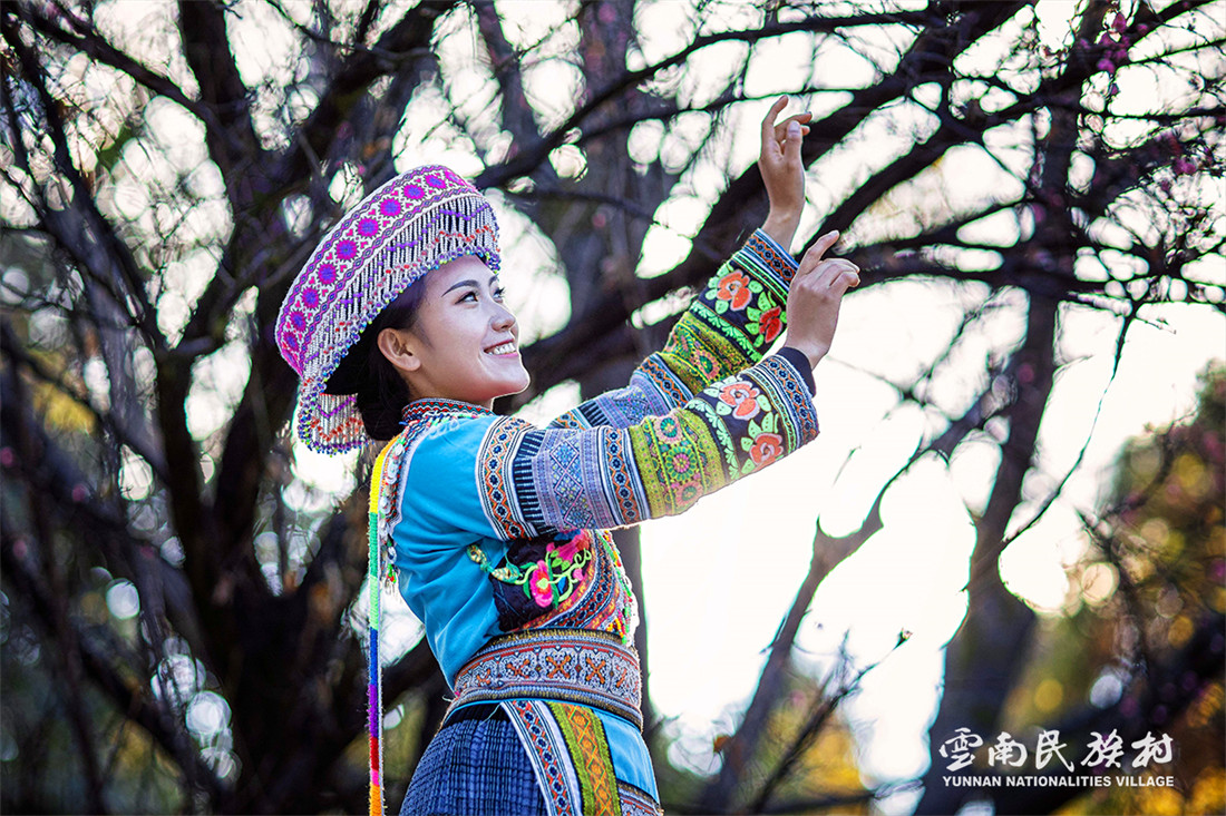 彝族在云南境內(nèi)約471萬人,是省內(nèi)人口最多、分布最廣的少數(shù)民族,主要聚居在金沙江、元江流域和哀牢山、無量山腹地。彝族是一個能歌善舞的民族,民間打歌、跳樂之風(fēng)盛行,大三弦、跌腳舞久負(fù)盛名?;鸢压?jié)是彝族最具特色的民族節(jié)日。彝族村占地50余畝,三虎浮雕墻與虎頭內(nèi)祖師形象表現(xiàn)了彝族虎鷹文化。太陽歷廣場圖騰柱上有太陽、虎、火和八卦圖形象,周圍環(huán)繞著10個朝向不同的月球造型,外圓周有12生肖石雕。依山而建的“...
